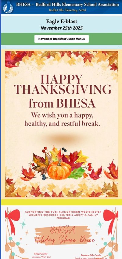 The Eagle e-Blast is a weekly newsletter that provides helpful information to keep you up to date on school activities, upcoming events, and important sign-ups.